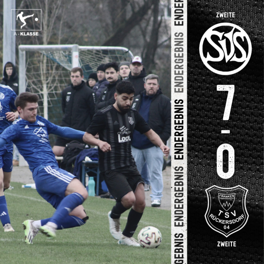 Nach dem Pausentee investierte Rückersdorf mehr, belohnte sich einmal mehr aber nicht für den kämpferisch enormen Aufwand. Die TSV-Zweite hielt das Duell mit dem Favoriten somit lange offen, wurde aber für weitere Nachlässigkeiten in der Schlussphase gnadenlos bestraft. Ein Doppelschlag von Fynn Roos zehn Minuten vor Spielende entschied die Begegnung schließlich (80./81.). Jan Morner stellte kurz darauf den 0:4-Endstand her (83.).