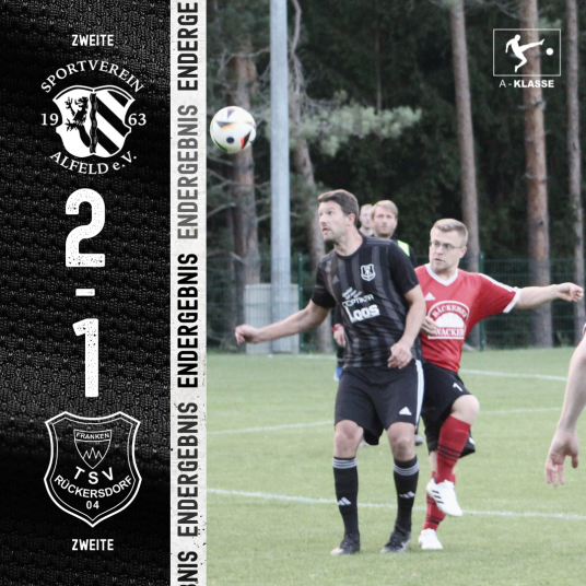 Auf dem kleinen Alfelder B-Platz entwickelte sich ein ausgeglichenes A-Klassen-Duell. Farid Fathi hatte nach einem Eckball die TSV-Führung auf dem Kopf, scheiterte aber am gut reagierenden Sven Raum im Alfelder Tor (15.). Auf der Gegenseite konnte sich Schlussmann Ahmad Abdullah mehrere Male auszeichnen. Kurios wurde es gegen Mitte der ersten Halbzeit, als Lukas Zigli den Ball zu seinem Torhüter zurückspielen wollte, diesen aber verfehlte und der Ball aus rund 45 Metern an Freund und Feind zur Rückersdorfer Führung ins Netz flog (25.). Die Antwort der Hausherren ließ aber nicht lange auf sich warten und Matthias Kohl erzielte per Schlenzer in den Winkel das 1:1 (30.).