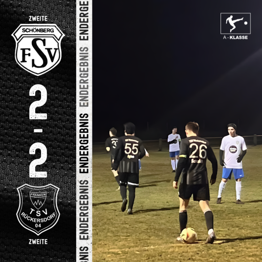 Der TSV Rückersdorf II muss sich beim 2:2-(1:1)-Remis beim FSV Schönberg II trotz zweimaliger Führung mit einem Zähler begnügen, hält damit aber einen direkten Konkurrenten zumindest auf Distanz.